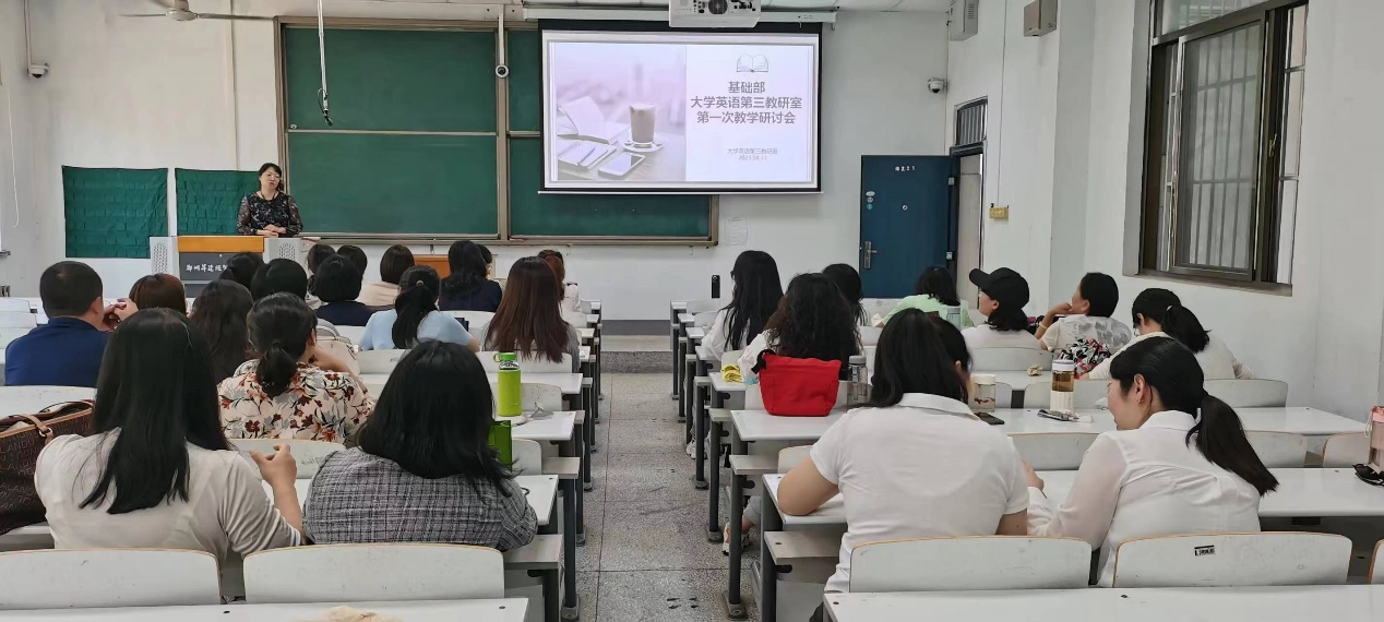 2023年8月31日,在综合楼221教室,基础部大学英语第三教研室召开了本学期第一次教学研讨会。第三教研室主任宋玮副教授主持会议,第三教研室全体教师参加了会议,基础部主任王莉莉教授也参加了会议并作出重要指示。