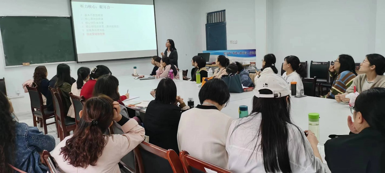 本次会议主要内容有两项:一、在读博士王书芳老师的博士论文分享,二、田歌华老师的大学英语四级听力技巧分享。通过本次教研会,老师们收获颇丰。