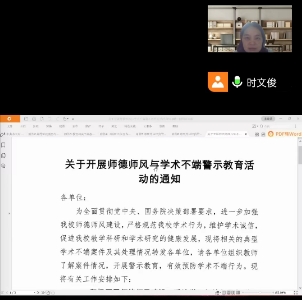 2023年10月16日,基础部数学教研室在腾讯会议线上举行了师德师风与学术不端警示教育专题会议,会议由教研室主任时文俊主持,基础部党总支书记张志银及教研室全体教师参加了此次会议。