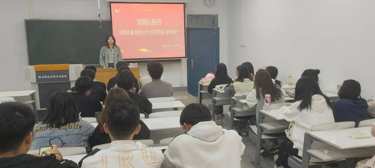为提高同学们规范停车、文明行驶的安全意识,积极响应公司号召,确保文明礼貌月的顺利进行,基础部全体成员于10月17日在综合楼127教室开展文明礼貌月主题班会,班会由辅导员老师李明明主持。