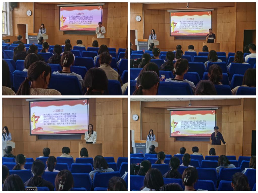 随着庄严的团歌响起,会议帷幕缓缓拉开。会议伊始,由王森源老师宣读团学组织全体成员名单。接着,由张志银书记致词,祝贺团学组织的成立,并对团学组织的各位成员寄予厚望。随后,由参会领导和教师代表为团总支副书记和各位部门负责人颁发聘书。然后,团总支副书记王宝文带领大家宣誓。各位负责人热情高涨,分别上台对未来工作进行介绍与展望。