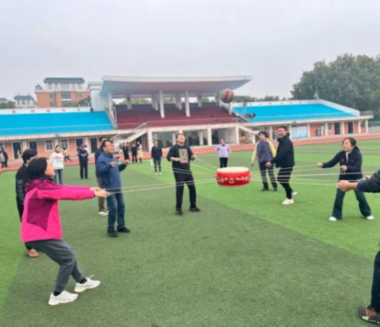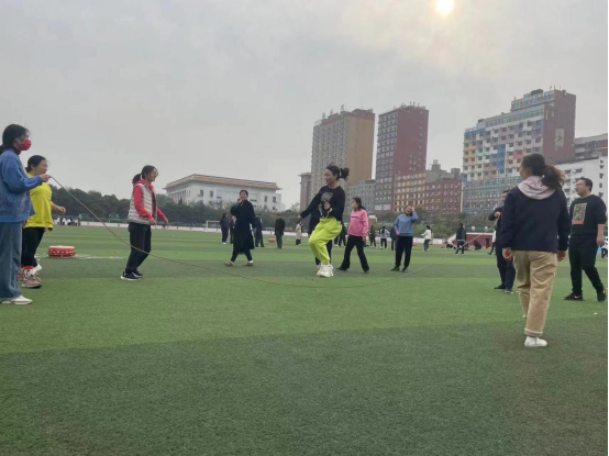 为增强教职工身体素质,培养团队协作精神,提高教职工凝聚力,11月9日,周四下午14:00—16:30,基础部分工会在体育场举办基础部第七届文体趣味运动会。本届运动会以教研室为单位,分成5个团队,活动分趣味“同心鼓颠球游戏”、“集体跳大绳”、“风火轮”、“投掷飞盘”和“篮球友谊赛”五个团体运动项目。基础部主任王莉莉、副主任焦争鸣、党总支书记张志银及全体教职工参与了各项趣味运动,老师们团结协作,踊跃参与,同台竞技,一展风采,以趣味活动为载体,丰富教职工的业余文化生活,展现了老师们德智体美全面发展意识和积极向上的进取精神。