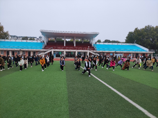 活动开始之前,邀请到体育公司张瑶老师,带领老师们做热身运动。