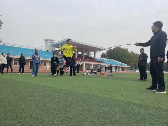 活动二:集体跳大绳,每个教研室10位老师,两人甩绳,8人轮流跳绳,3分钟内计总个数,个数多着获胜。