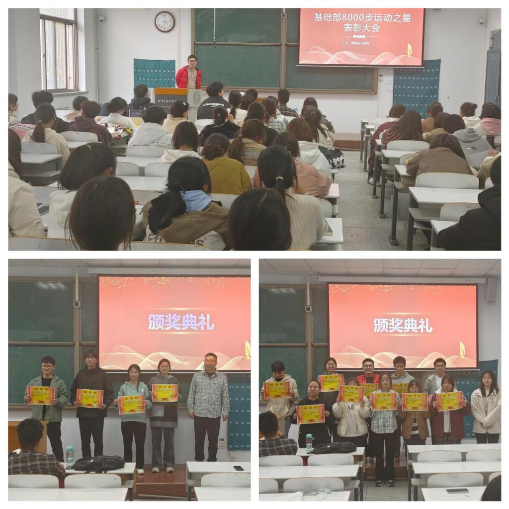 为表扬与鼓励同学们积极完成“每日8000步”,提高同学们运动的积极性,推动基础部体育育人的文化。基础部数学与应用数学专业全体员工于11月21日下午4点在综合楼220教室召开“每日8000步”表彰大会,本次会议由基础部文体部负责人李飞同学主持。