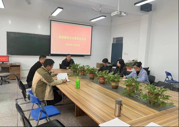 2023年11月23日中午,基础部党总支在综合楼115召开委员会议,研究部署党总支重要工作,会议由党总支书记张志银主持,全体委员参会。