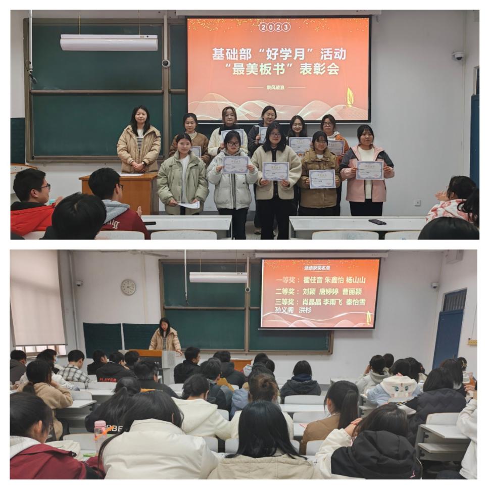为进一步提高员工学习的自主性和日常行为的规范性,促进员工勤奋好学、励志成才,提升育人成效,基础部积极响应公司文明礼貌好学月号召,召开一系列主题班会。11月28日下午4点基础部数学与应用数学全体员工于综合楼226教室召开好学月宣传教育主题班会暨“最美板书”表彰会,会议由辅导员李明明老师主持。