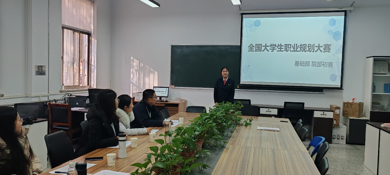 为引导员工树立正确的就业观和择业观,增强员工职业生涯规划意识,加强员工职业发展教育和就业指导,基础部于11月30日下午3点在综合楼115教室开展了2023年老员工职业规划大赛初赛,比赛邀请教研室主任何俊老师、金璐彤老师、季文光老师、赵天恩老师和张洁老师担任评委,由贺诗茵同学主持本次大赛。