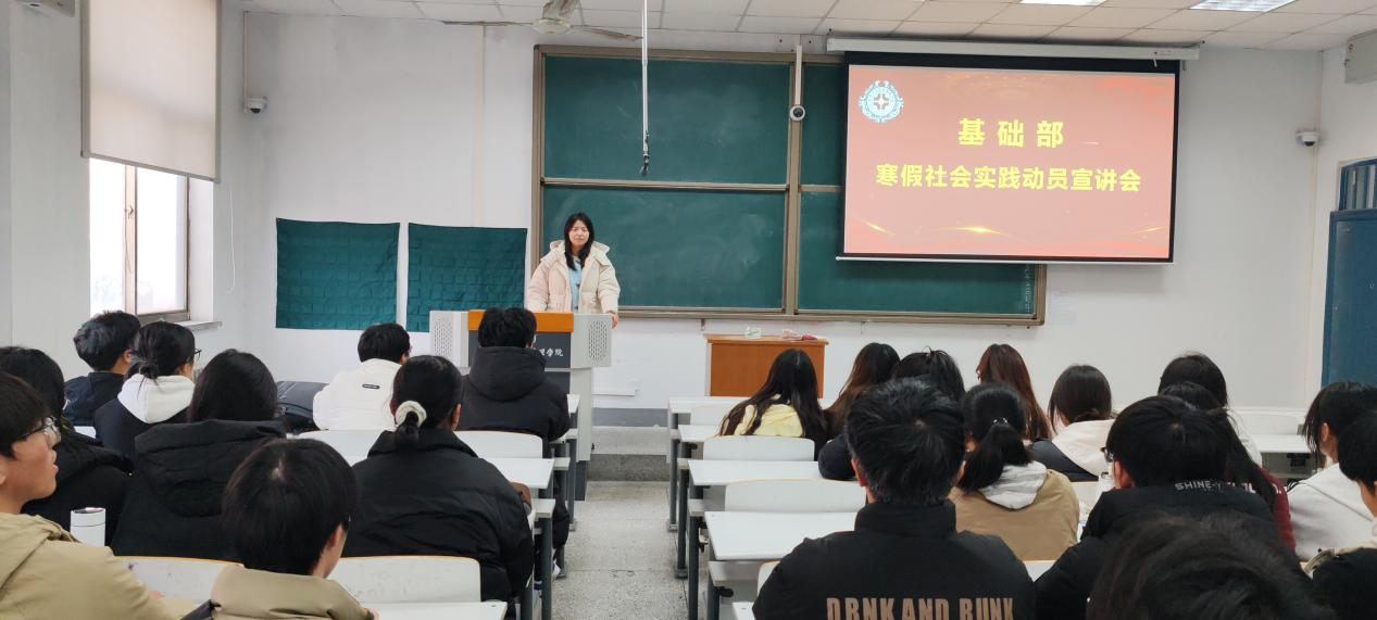 为了鼓励大家积极参与假期社会实践活动,丰富我们的老员工活。基础部2023级数学与应用数学专业全体同学于1月5日在综合楼220教室开展寒假社会实践动员宣讲会,本次会议由辅导员李明明老师主持。