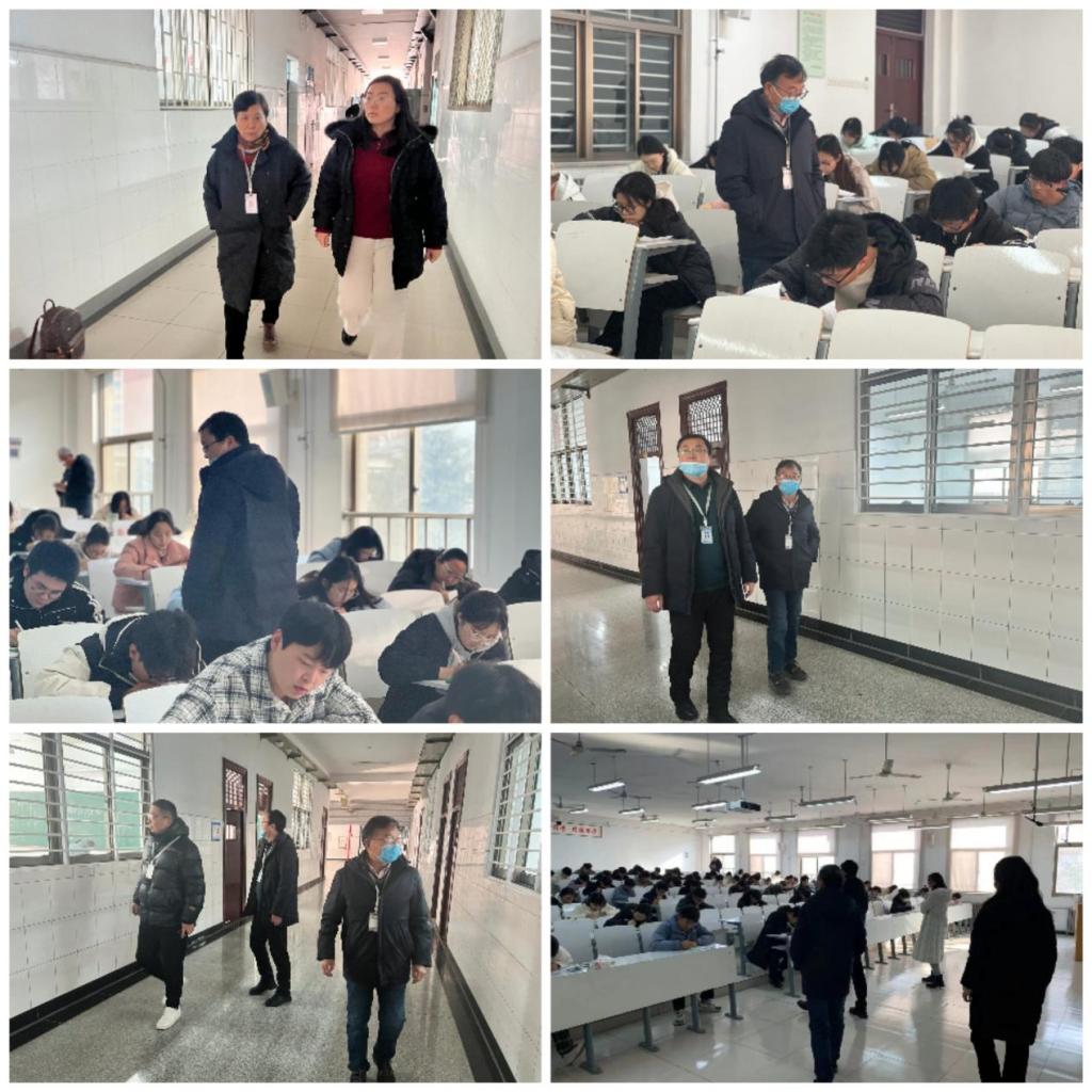 1月8日——1月12日,2023-2024学年第一学期期末考试周正式开始,基础部主任王莉莉、副主任焦争鸣、党总支书记张志银、教学秘书张艳带领教学干事季文光和辅导员李明明深入考场,在各考场开展了全覆盖巡查工作,对考场进行全面细致督察,规范我部期末考试管理,进一步强化考风考纪。