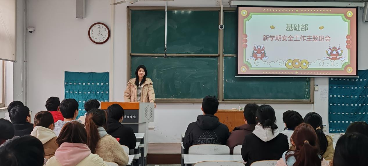 随着漫长的寒假过去,美好的春天来临,在这万物复苏的时刻,开启新的学期。为本学期的学习和工作能够更好的开展,基础部数学与应用数学专业全体同学于3月5日下午在220教室开展了新学期安全工作主题班会,本次会议由辅导员李明明老师主持。