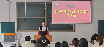 在本次分享会上,我部员工资助宣传大使代表李飞同学分享了他在假期宣传时的经验,带领同学们积极深入了解国家各项资助政策,同时分享了有关诚信教育、励志教育和感恩教育的具体例子,让基础部的同学们深深感受到高校贷款、奖助学金、勤工助学等相关政策的温暖,既给予家庭经济困难员工生活上的支持和关爱,又给予他们一个追梦的机会。积极贯彻落实教育扶贫资助政策有效减轻了贫困家庭的经济压力,同时,各项宣传活动的落实也教育受助员工懂得感恩。