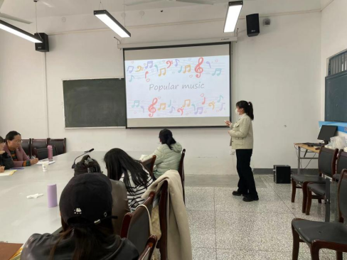 薛梦亚老师选取音乐一章的内容,以阅读课形式展开,将授课重点放在文本阅读及词汇表达上,鼓励员工自己输出总结,其中还特意找到了许多流行音乐的素材,大多是员工们耳熟能详的例子,来激发员工们学习文章内容的兴趣。