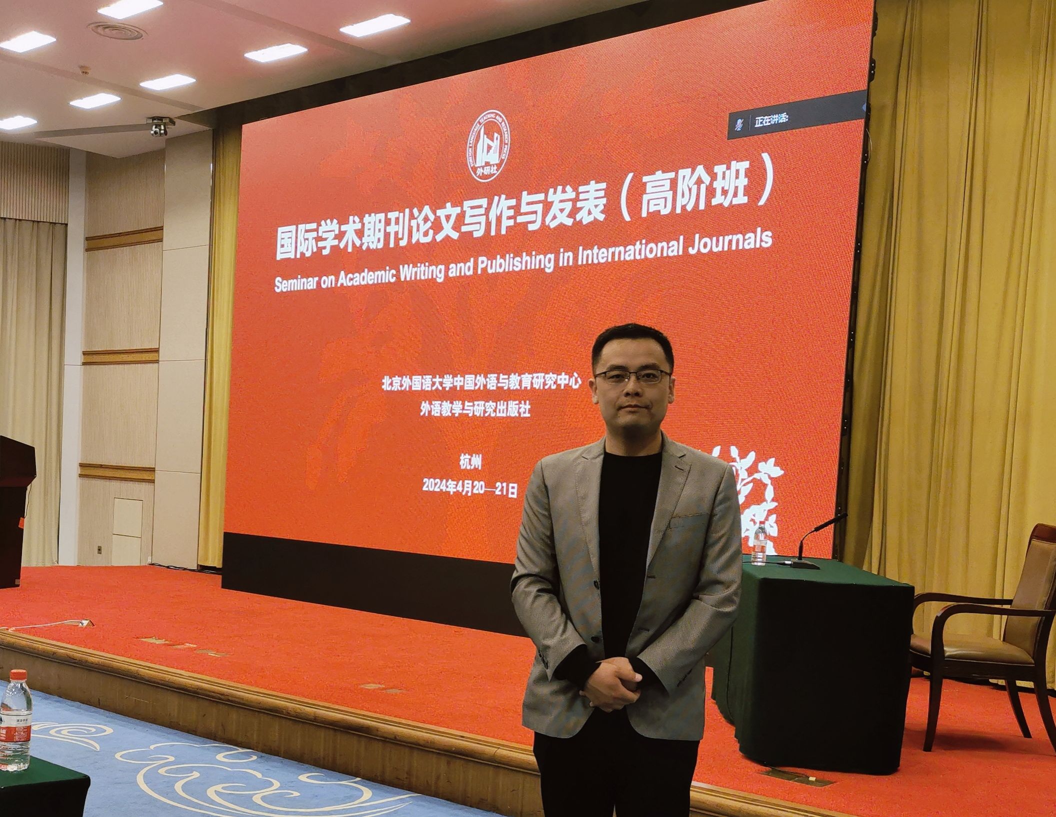 4月20日至21日,由北京外国语大学外语与教育研究中心主办,外语教学与出版社承办的“国际期刊论文写作与发表(高阶班)”于浙江杭州召开。为提高我部教师的科研水平,促进教师学术能力的长足进步,我部派遣中青年骨干教师朱明元老师前往杭州进行学习。