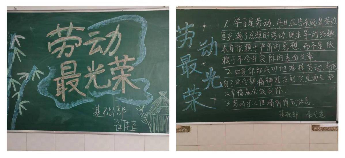 在“最美板书”活动中,2023级数学与应用数学专业员工踊跃参加,我部连续一月组织不同员工书写关于劳动教育的板书。通过该项活动,一方面加强员工们对劳动教育的认识,另一方面,契合专业人才培养目标,能够帮助员工在未来从事教师职业时打下坚实基础。