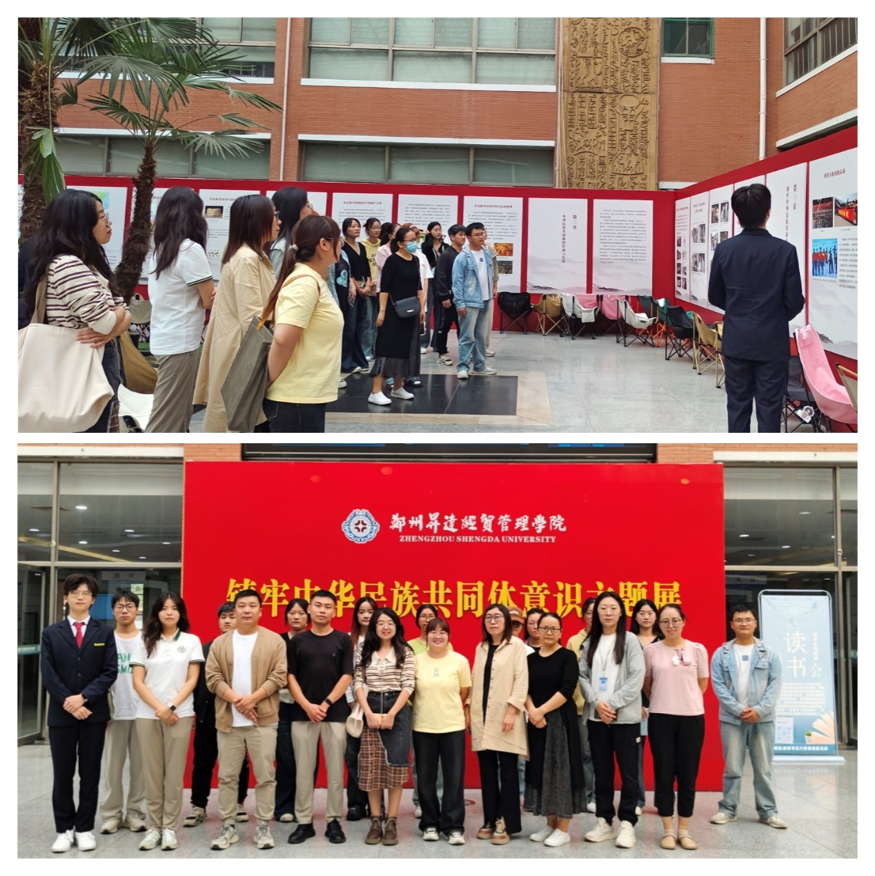 本次“铸牢中华民族共同体意识主题展”主要包括从历史中走来的中华民族、中华民族共同体的形成与发展、铸牢中华民族共同体意识的关键所在、从天地中呈现河南铸牢中华民族共同体意识的具体实践、新时代党的民族工作的根本遵循、郑州升达经贸管理关于我们和统战工作剪影六部分。
