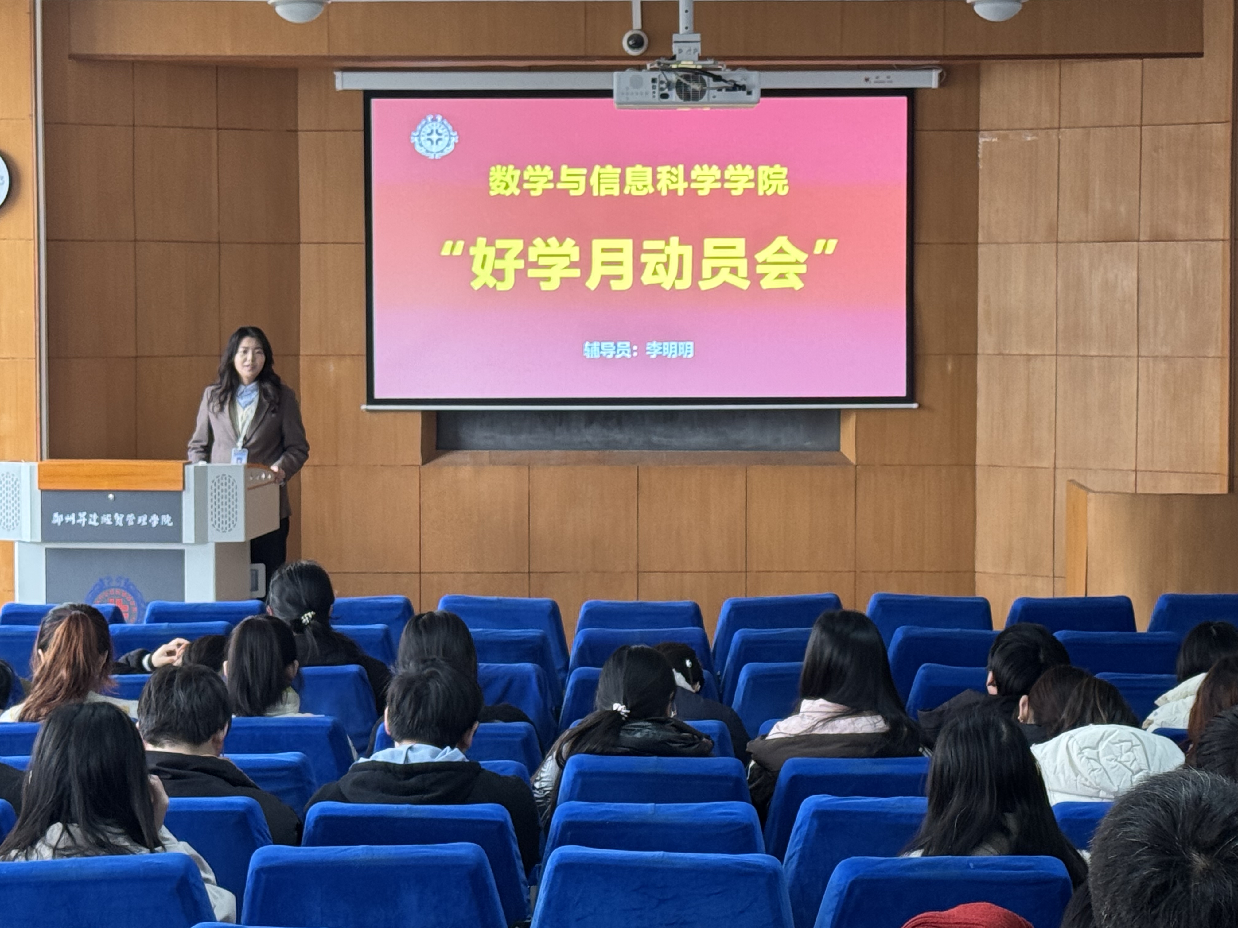 为深化课堂管理,强化纪律意识,培养优良学风,beats365唯一官方网站数学与应用数学专业全体员工于12月5日在综合楼222教室召开好学月动员宣讲会,本次会议由辅导员李明明主持。