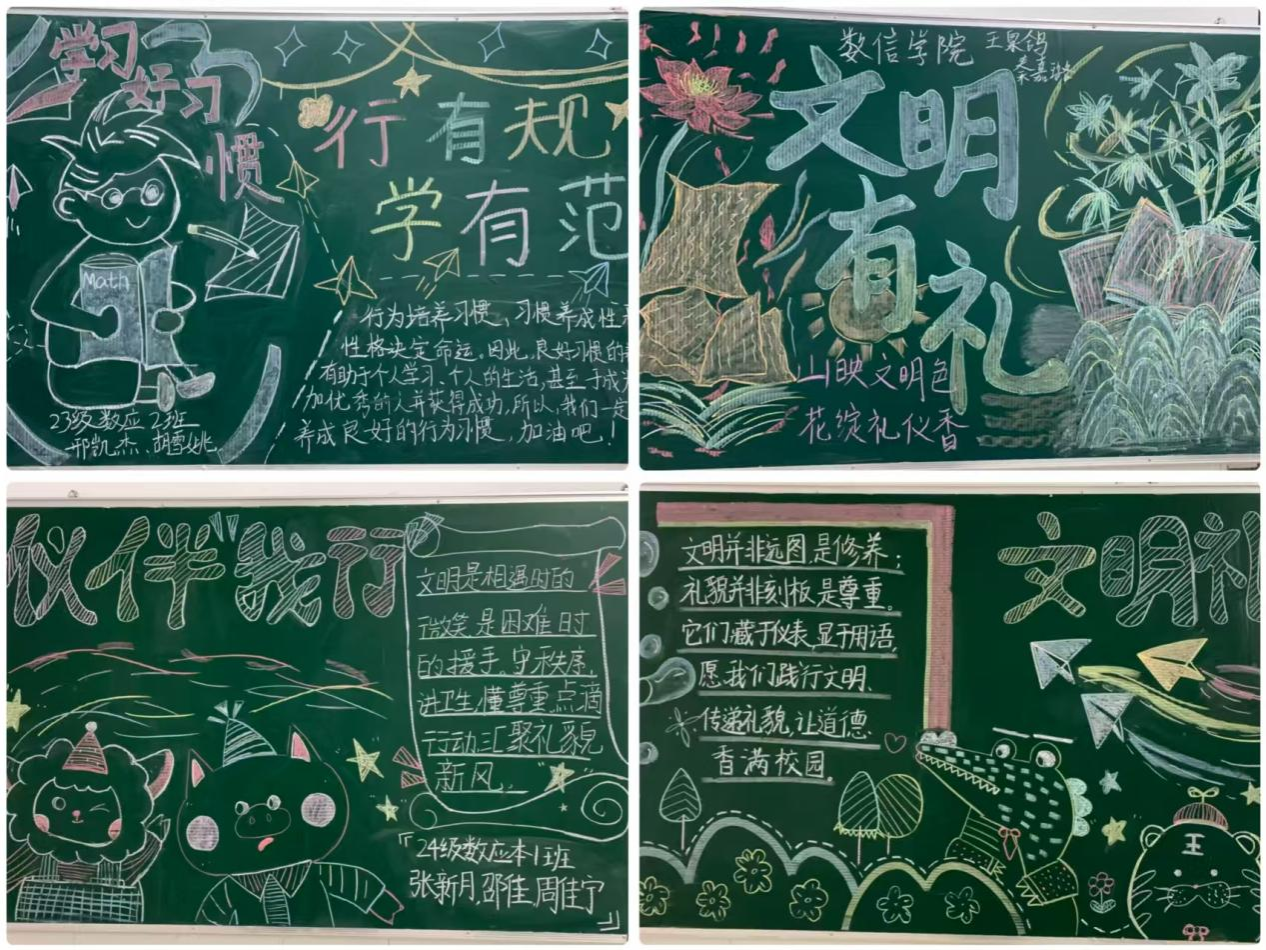 10月15日至11月15日,一场融合知识、美感与感染力的“文明礼貌月”主题黑板报展在综合楼二楼宣传栏展出。各班级创作的黑板报围绕“习惯养成”“文明礼貌”等主题,展现了同学们的学习决心与文明风貌,进一步营造了公司浓厚的学习与文化氛围。