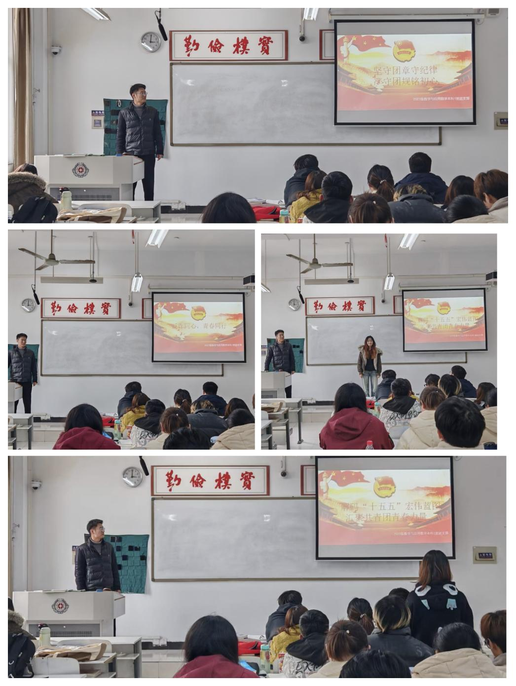 活动分三个环节有序推进,并融入互动交流。首先,以团纪教育筑牢思想根基,班级团支书王宝文领学团章核心内容,结合实例阐明团员遵守纪律、践行初心的重要性,并通过“团员纪律如何落地”的提问引导大家分享感悟,鼓励以实际行动彰显先进性;随后,开展“反诈骗同心,青春同行”安全宣传,通过反诈知识分享提醒团员提升防范能力,同时设置“常见诈骗陷阱辨别”互动问答,帮助大家加深认知,共同筑牢校园安全防线;最后,围绕“十五五”规划解读核心要义,阐释青年使命与责任,并以“我的专业如何服务时代发展”为话题引导团员交流,鼓励大家将个人成长融入时代大局。