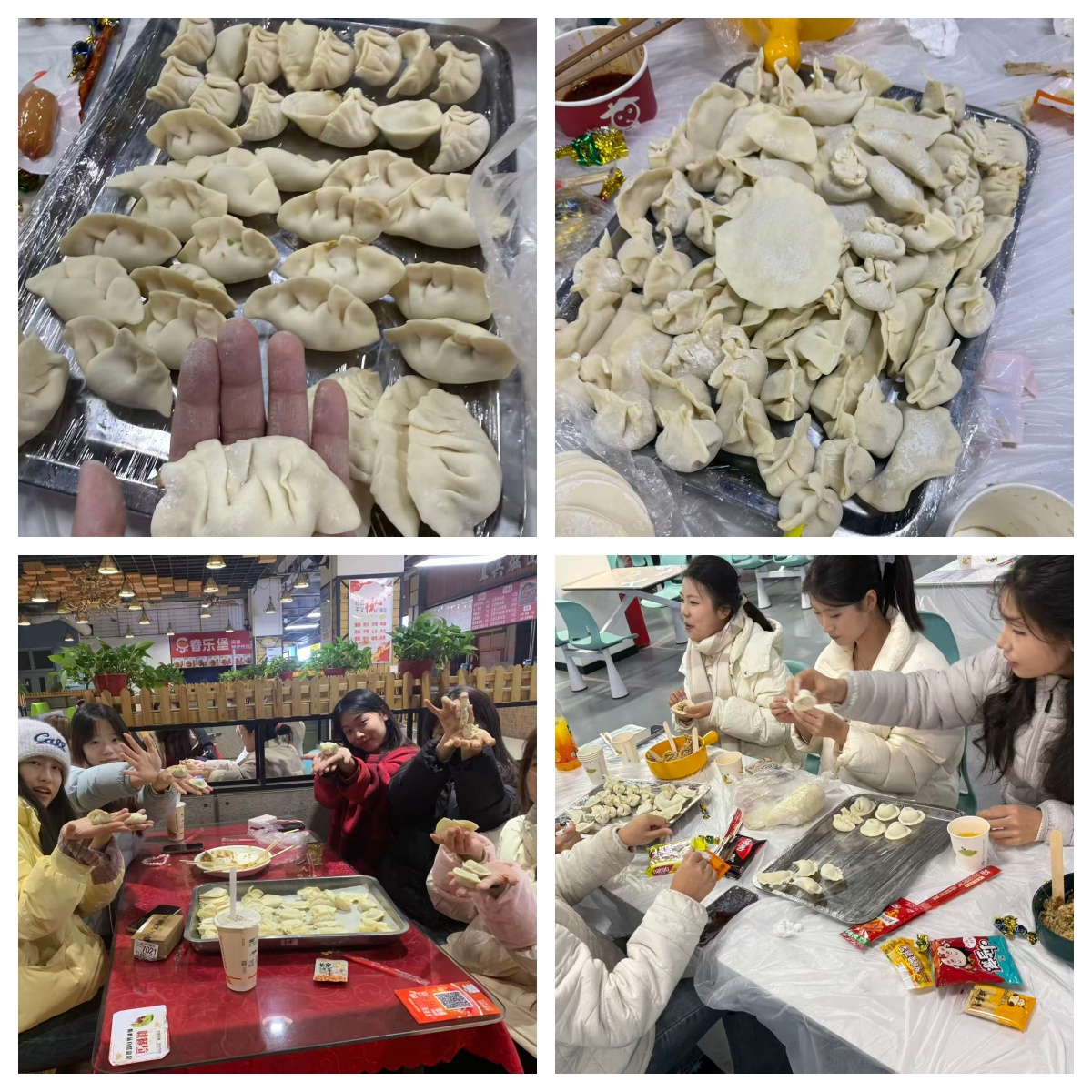 活动现场节日气氛浓郁,暖意融融。同学们分组协作,从揉面擀皮到调馅包捏,亲身体验包饺子的全过程。起初手法虽显生疏,但在互相学习与不断尝试中,大家逐渐熟练起来,创意频出,元宝形、月牙形、柳叶形等各具特色的饺子纷纷呈现。过程中笑语不断,默契渐生,食堂里弥漫着温馨热闹的集体气息。