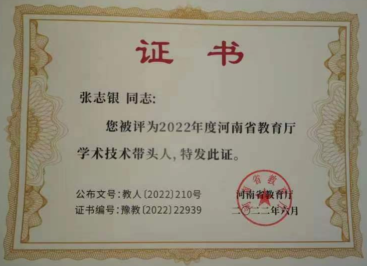 0号)中获悉,经基层推荐、专家评审、结果公示等程序,公司基础部党总支书记张志银副教授入选“2022年河南省教育厅学术技术带头人”。此项荣誉的获得,既是对公司团队力量学术水平的肯定,也将对公司的团队队伍建设起到很好的激励作用。