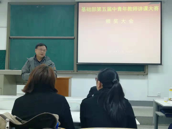 基础部教学主任焦争鸣教授总结颁奖环节,强调了中青年教师参加类似活动的重要意义,对参与此次赛事的工作人员、辅导人员、参赛选手进行了充分肯定。
