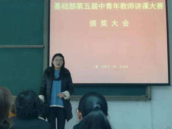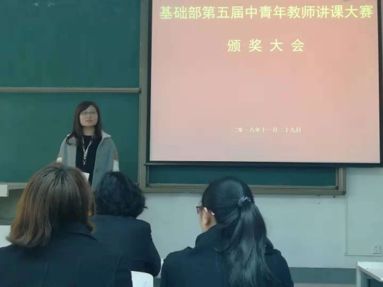 11月29日,基础部召开第五届中青年教师讲课大赛颁奖大会。基础部主任王莉莉教授主持了会议。