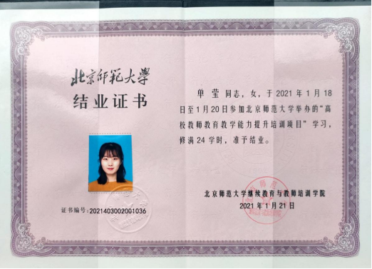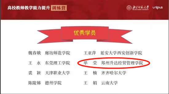 • 2021118日至20,基础部教师单莹参加了由北京师范大学主办,北京外研在线数字科技有限公司协办的线上“高校教师公司产品能力提升训练营”线上培训期间,来自全国各地的一百多位英语教育专家、学者围绕 “高校教师教学技能提升”这一主题展开了深入的交流和探讨