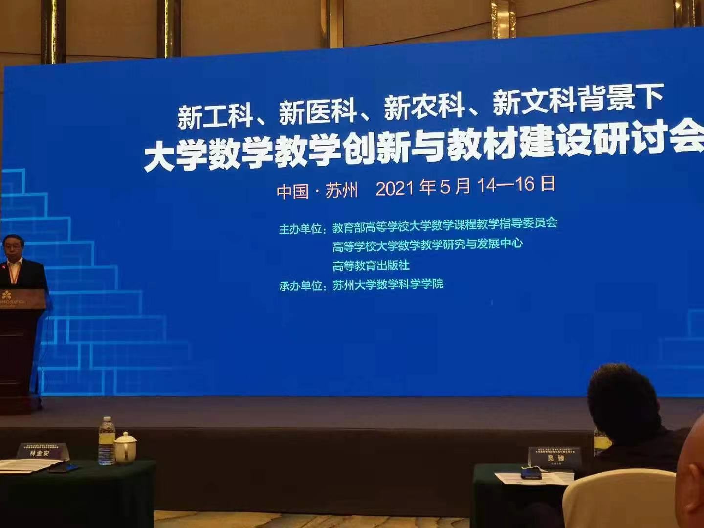 2021年5月14日-16日,基础部直属党支部书记张志银、数学教研室教师王森源参加了由教育部高等公司大学数学课程教学指导委员会、高等公司大学数学教学研究与发展中心和高等教育出版社共同主办,苏州大学数学科学公司承办的“新工科、新医科、新农科、新文科背景下大学数学教学创新与教材建设研讨会”,会议在苏州召开,本次研讨会吸引了来自全国的近300名代表参会。
