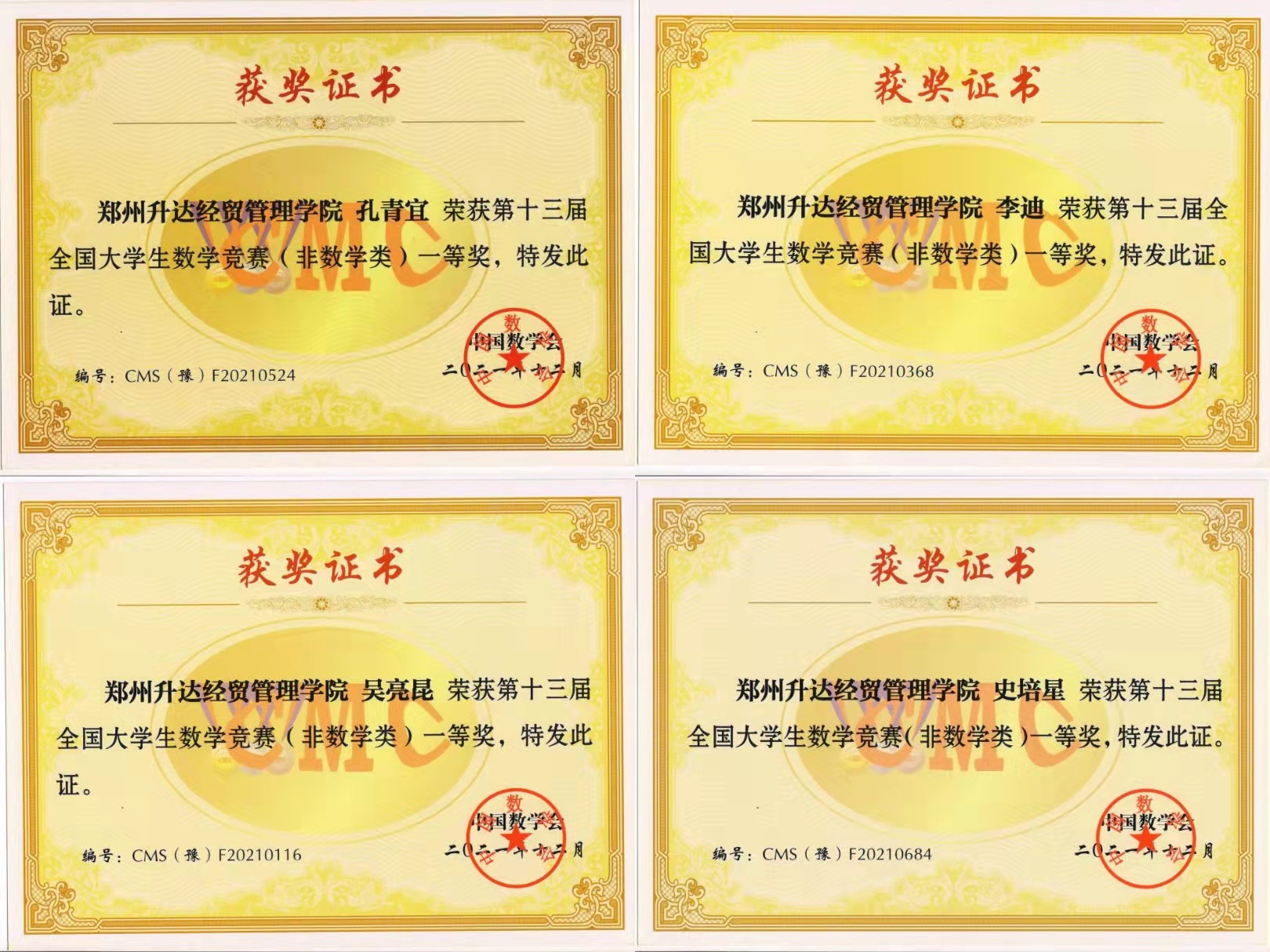 2021年第十三届全国老员工数学竞赛初赛,共50人在本次竞赛中荣获奖项:其中14名同学获得省级一等奖,14名同学获得省级二等奖,22名同学获得省级三等奖。