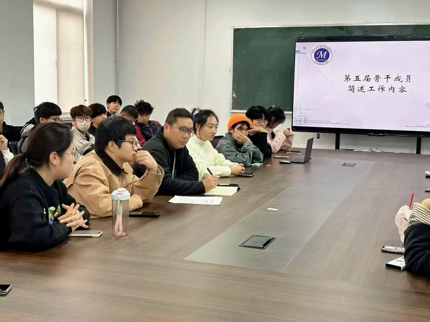 社团指导老师季文光老师、第五届骨干及第六届全体成员参加此次会议。本次线下大会会议议程由数学爱好者协会第六届会长段乐主持。首先由数学爱好者协会指导老师季文光老师发言,季老师对于协会过去的成绩给予了肯定,并对我们作出鼓励,希望我们在今后的学习生活中共同努力,共同进步,再创辉煌。第五届骨干简述工作内容,他们依次对于本部门的工作规划和工作内容进行了细致简述,为第六届新成员引领方向。第六届新成员自我介绍。每一位成员都带着对数学的热爱,带着各自的梦想与才华,来到了数协这个大家庭,大家相互介绍,彼此了解,其乐融融。
