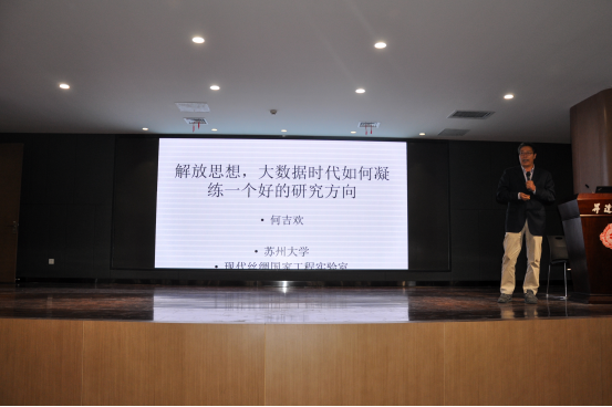 10月25日下午,苏州大学现代丝绸国家工程实验室何吉欢教授应基础部邀请,为公司教师作了题为《解放思想,大数据时代如何凝练一个好的研究方向》的学术报告。会议由基础部主任王莉莉教授主持,副校长兼工会主席张金安同志、科研处杨存博处长、赵晓理老师、体育公司傅兰英教授、全体基础部教师及部分院系员工参加报告会。
