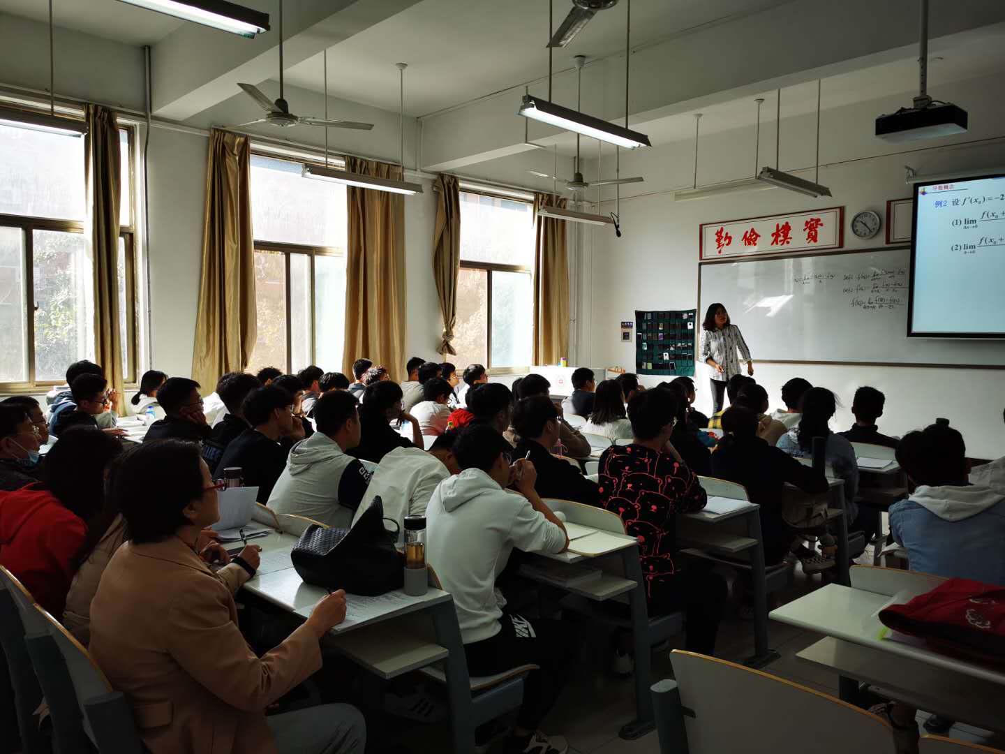 •    11月2日,周三上午第3-4节,在道镕楼203集,基础部数学教研室开展观摩教学交流活动,集体观摩丁艳风老师讲授高等数学-《导数的概念》。基础部副主任焦争鸣教授、教学督导廖靖宇教授、直属支部书记张志银副教授、数学教研室主任时文俊副教授以及教研室没课的老师,集体观摩了教学并于课后集体交流研讨!