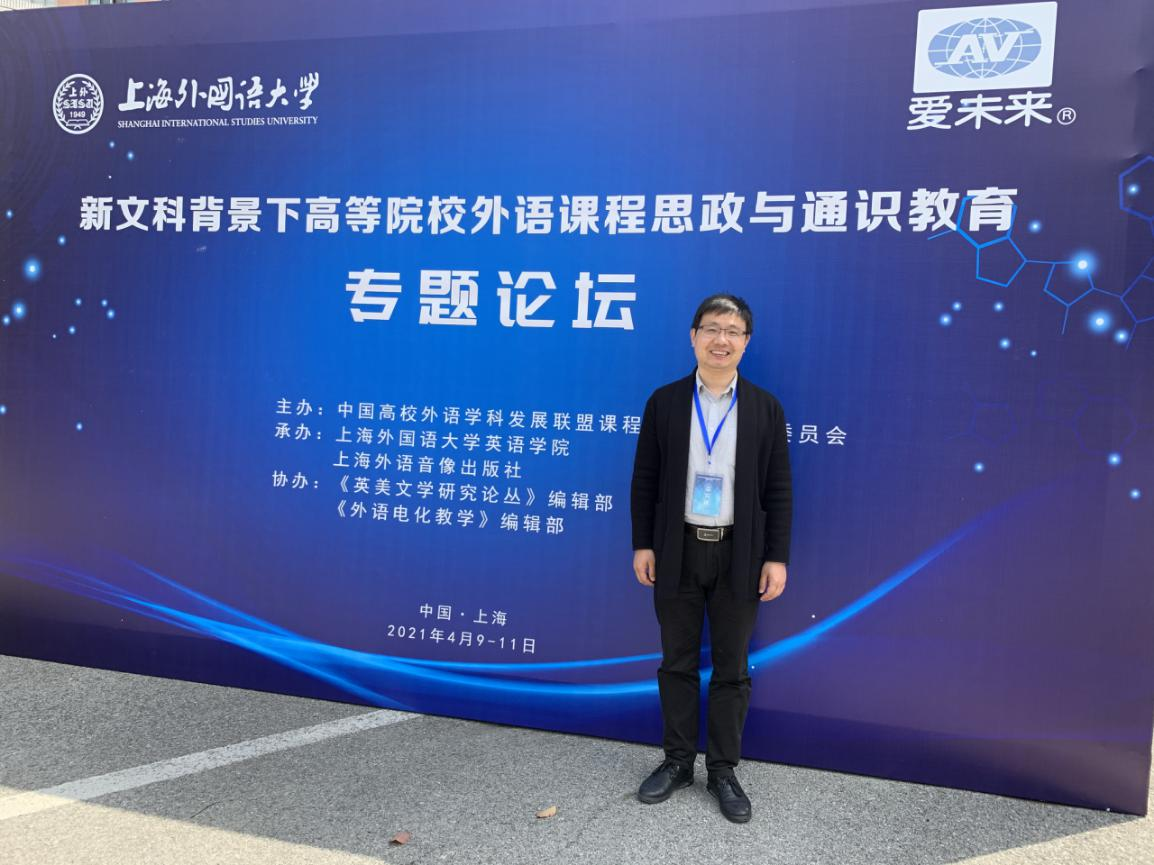 在新文科建设背景下,为贯彻习近平总书记关于课程思政建设的要求,强化高等院校英语专业和大学英语课程思政和通识基础教育,拓展外语学科人文性和应用性的内涵,培养高素质、国际化的新型人才,实现立德树人的目标,“中国高校外语学科发展联盟课程与教材建设委员会”联袂上海外国语大学英语公司及上海外语音像出版社于2021年4月9日至11日在上海举办了“新文科背景下高等院校外语课程思政与通识教育”专题论坛。公司基础部教师贺光辉副教授参加了该论坛。