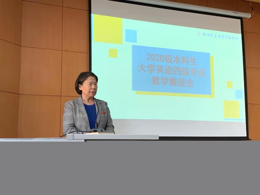 基础部主任王莉莉教授作了基础部工作汇报。王主任肯定了全体老师为四级考试所做的大量努力工作,并全面安排了基础部为提升员工英语水平以应对四级考试的未来工作重点。