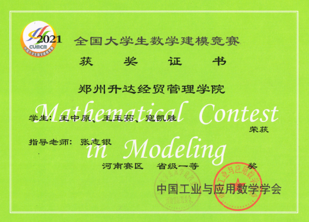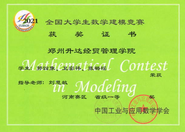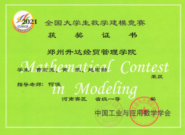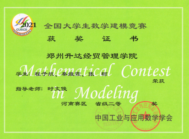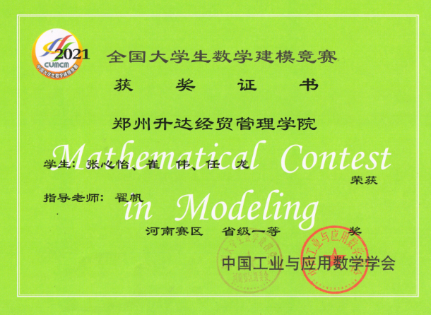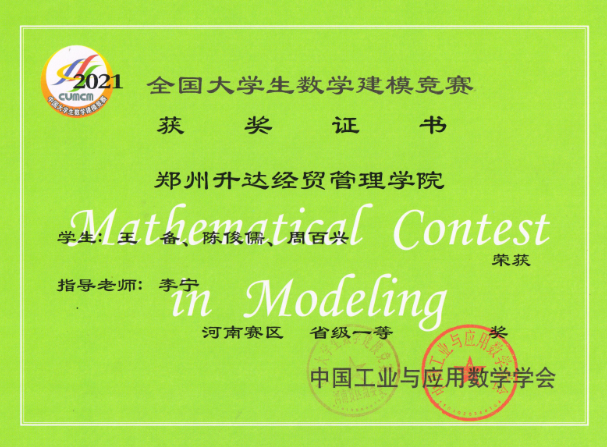• 2021年全国老员工数学建模竞赛获奖近日揭晓,公司共组织35支队伍参赛, 其中29支队伍获奖,分别获得河南省赛区“省级一等奖”6组,“省级二等奖”8组,“省级三等奖”15组。