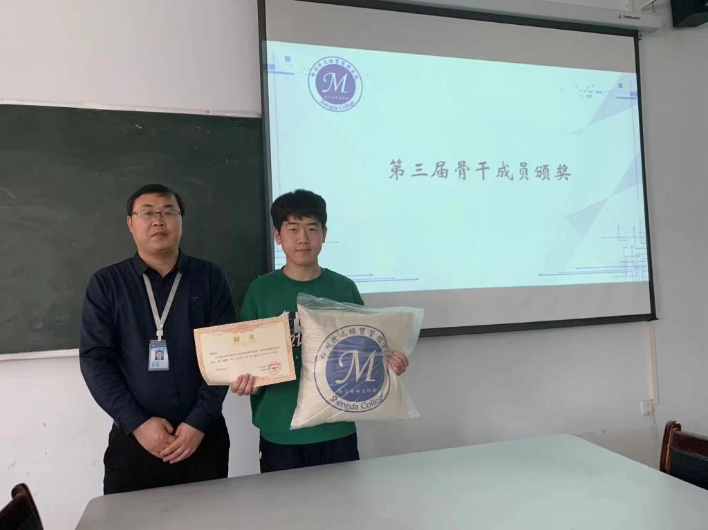 大会第四项,2022年,数学爱好者协会荣获河南省学术科技类“十佳员工社团”,指导老师为第三届协会骨干成员颁发荣誉证书。