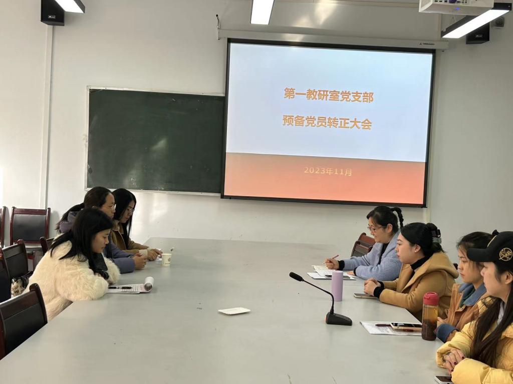 近日,基础部第一教研室党支部召开预备党员转正大会,会议由党支部书记权宇同志主持,讨论预备党员普晖同志转为正式党员问题,支部党员人数9人,实际参会人员8人,符合会议要求。