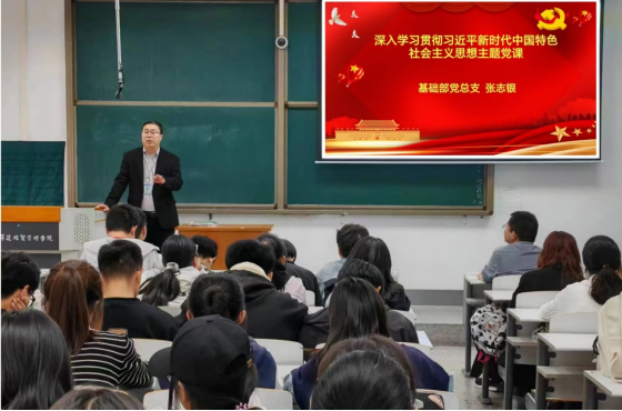 为深入学习贯彻习近平新时代中国特色社会主义思想,10月23日中午,在综合楼206室,基础部党总支书记张志银为体育公司、交通公司、基础部的第十八期入党积极分子、发展对象和预备党员讲授题为“深入学习贯彻习近平新时代中国特色社会主义思想”的主题党课。