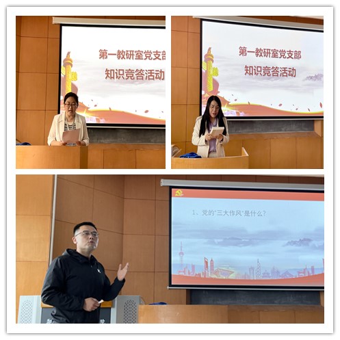 为有力地促进党员同志全面学习、全面把握、全面落实党的二十大精神,推动支部高质量发展。2023年5月25日下午,基础部第一教研室党支部在综324开展党员应知应会知识竞赛活动。活动由支部书记权宇同志组织,朱明元同志主持,基础部王莉莉主任莅临指导,第一教研室党支部全体党员同志参与了知识竞赛。