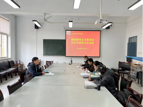 2023年1月16日上午,基础部党总支委员在综合楼218会议室召开2022年度民主生活会,党总支委员权宇、彭春燕、季文光、王森源等参加会议,会议由书记张志银同志主持。
