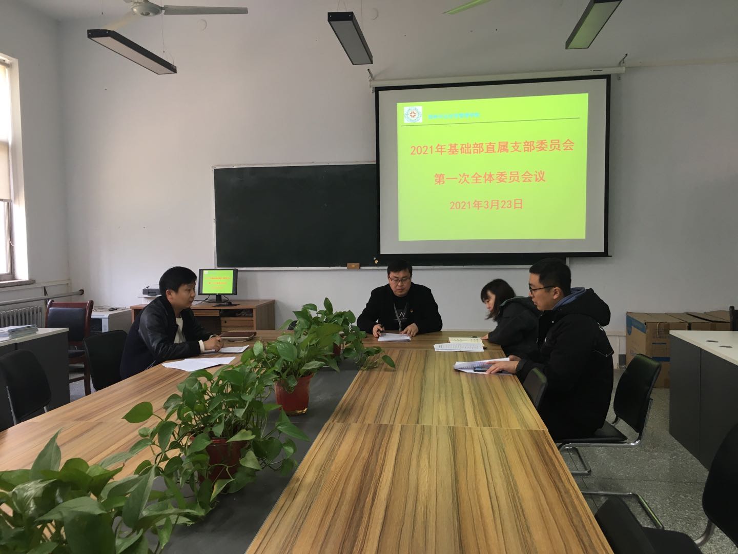 3月23日中午12点30分,基础部直属支部委员会在综合楼115召开2021年第一次全体委员会议,全体委员参加会议,支部书记张志银同志主持了此次会议。