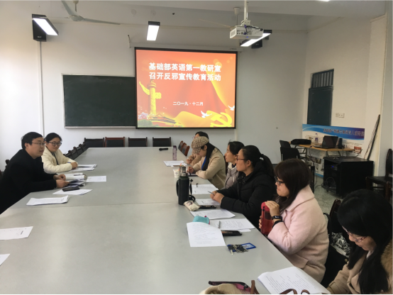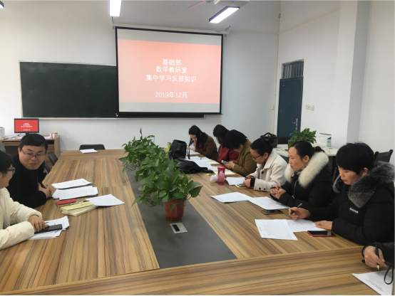 近期,为进一步增强基础部教师防邪、反邪思想意识,营造浓厚的反邪、防邪氛围,基础部数学教研室和英语第一教研室利用中午休息时间,分别组织教研室老师集中学习宣传反邪知识。基础部直属党支部书记张志银参与学习,并给大家讲授反邪知识。