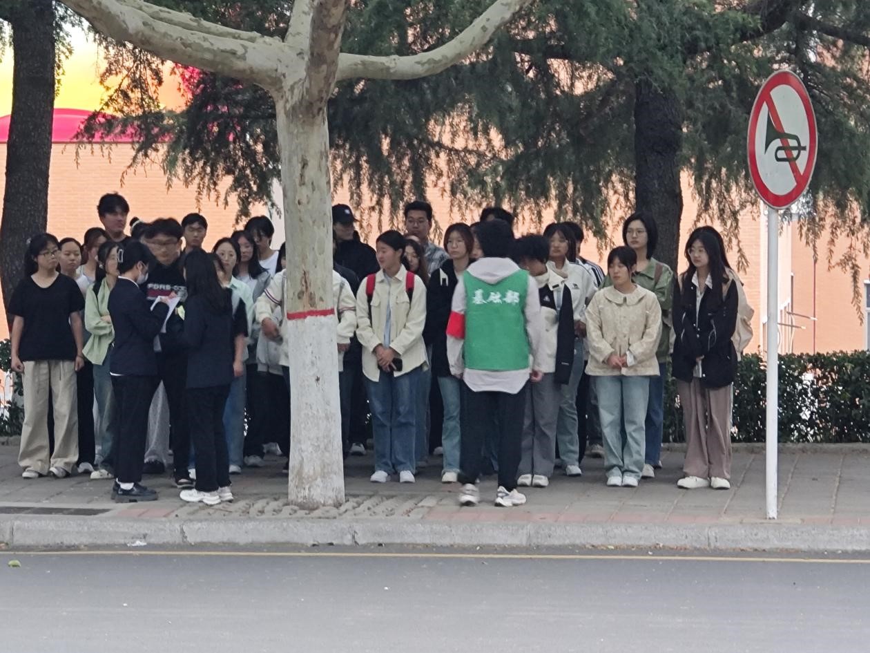 在执勤方面,基础部员工严格遵守规章制度,认真履行职责。执勤志愿者们统一穿着马甲、袖标、佩戴工作牌,分别站在勤俭路、升达大道两旁维持秩序。升旗前,部分执勤人员将升旗要求通知到每一个班级;当广播音乐响起时,执勤志愿者礼貌拦人拦车,保证国旗班经过时道路畅通,当广播第二项语音播报行注目礼时,执勤志愿者面向国旗大喊“全体肃立”,国歌响起时,员工们驻足向国旗行注目礼,师生们深深地感受到国旗教育的意义。