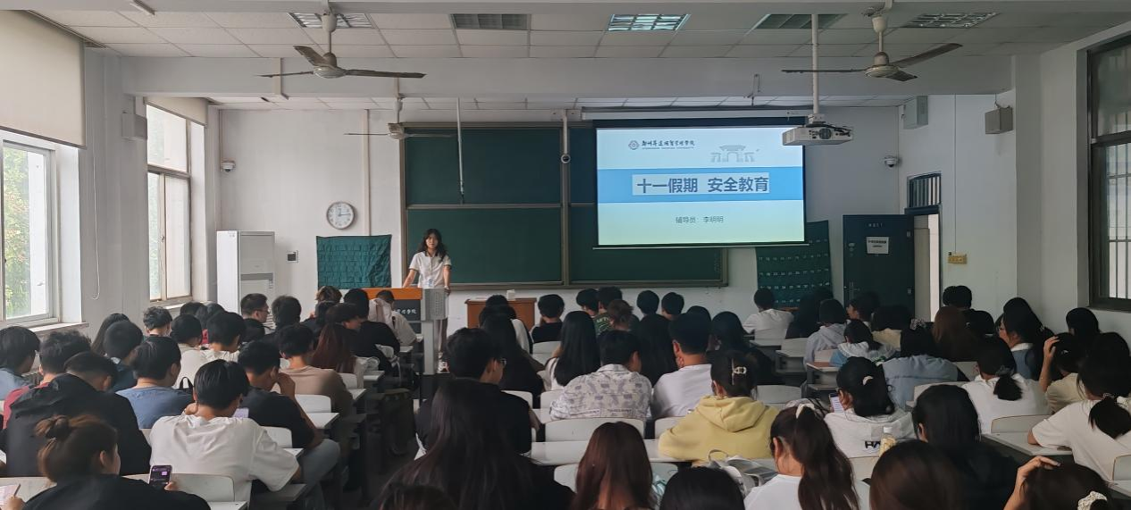 会议伊始,辅导员李明明着重强调一直以来进行的防诈骗工作并对员工进行法治教育,宣传普法工作,旨在提高全体员工防范意识。接着分别从防火防盗,防极端天气、交通事故等各项方面对全体员工进行提醒。最后,希望全体员工能够度过一个轻松愉快的国庆假期。